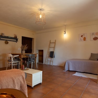 Is een tweekamerappartement, bestaande uit een woonkamer en slaapkamer. In de woonkamer is er een mogelijkheid om 2 extra eenpersoonbedden te plaatsen.